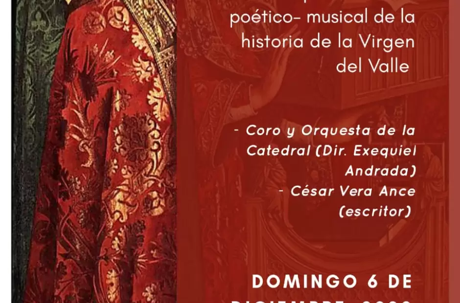 En la oportunidad, el escritor catamarqueño César Vera Ance recitará un poema condensando la historia de la Virgen del Valle, mientras que la musicalización estará a cargo del Coro y Orquesta de la Catedral, dirigidos por Exequiel Andrada.
