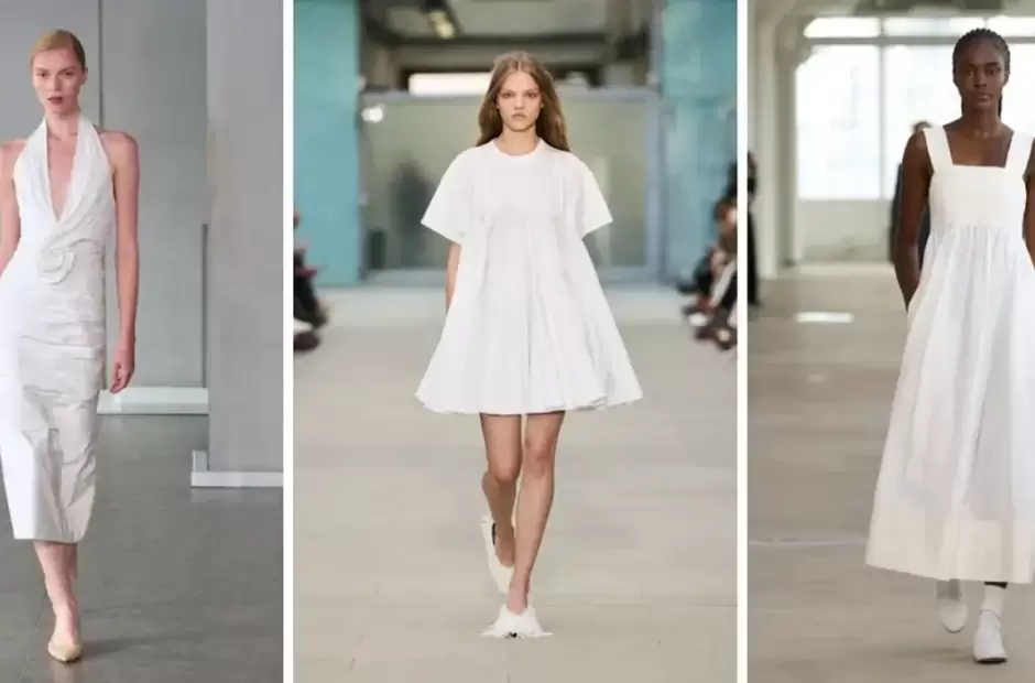 Dentro de esta tendencia conviven, además, propuestas más románticas y delicadas, enriquecidas con detalles como broderie, puntillas y volantes ligeros, que aportan movimiento y un aire etéreo al conjunto. Estas terminaciones suman textura y personalidad sin restarle frescura a la prenda, consolidando al vestido como una opción versátil y sofisticada a la vez.