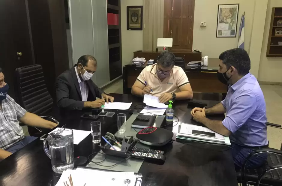 El ministro de Infraestructura y Obras Civiles, Eduardo Niederle, recibió hoy en su despacho al intendente de Mutquín, Carlos Luna, para firmar un convenio para que, a través de Vialidad Provincial, se avance en la pavimentación de algunas calles de esa localidad.