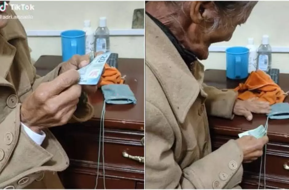 El video fue publicado en la cuenta personal del nieto en TikTok @adri.anzuelo y se puede apreciar el momento en el que la abuelita saca un billete de su bolsa de ahorros y se lo da con cariño: “Comprate lo que quieras. Unas galletas, un pastelito”.