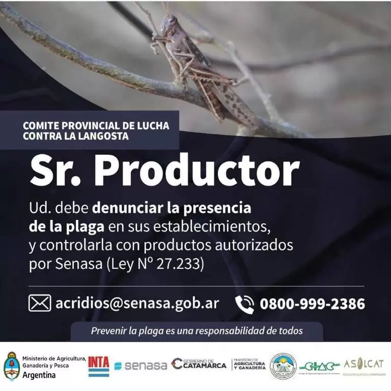 Los monitoreos están a cargo de SENASA con insumos aportados por el Ministerio de Agricultura y Ganadería. Los municipios en alerta son los de Tinogasta, Pomán, Saujil, Andalgalá y Belén.