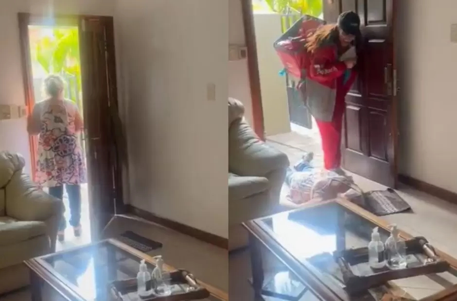 Sin embargo, el plan no salió como ellos esperaban y todo fue filmado por la cámara oculta del celular de Rodrigo, hermano de la joven recién llegada al país. En el video se aprecia cómo la madre abre la puerta y espera la llegada del delivery.