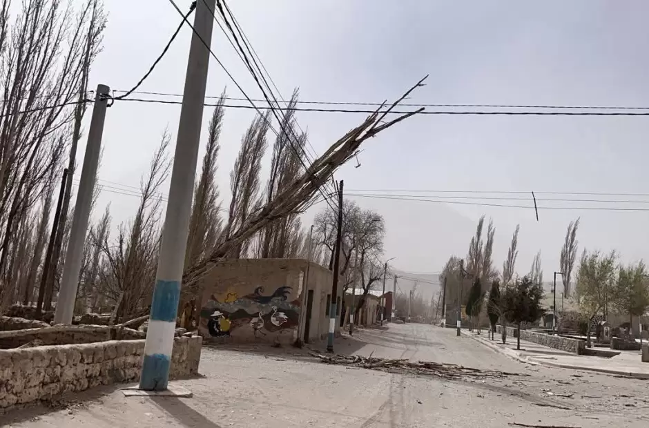 Un fuerte temporal de viento, con ráfagas que superaron los 100 km/h, azotó la localidad de El Peñón, en el departamento Antofagasta de la Sierra, este lunes provocando caída de árboles, daños en viviendas y cortes en el servicio eléctrico. El fenómeno había sido alertado por el Servicio Meteorológico Nacional y Defensa Civil, en el caso de Catamarca.