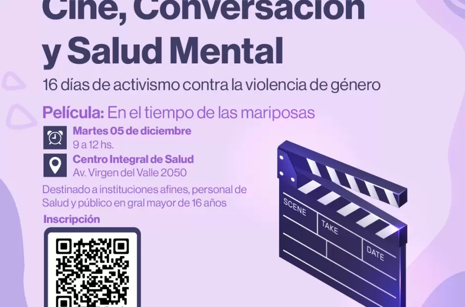 En el marco del Día Internacional para la Eliminación de la Violencia contra la Mujer, el Dispositivo Perspectiva de Género en Salud Mental, llevará a cabo el encuentro “Cine, Conversación y Salud Mental - 16 días de activismo contra la violencia de género”. Esto se concretará este martes 5, a las 9 horas, en el Centro Integral de Salud, Av. Virgen del Valle 2050.