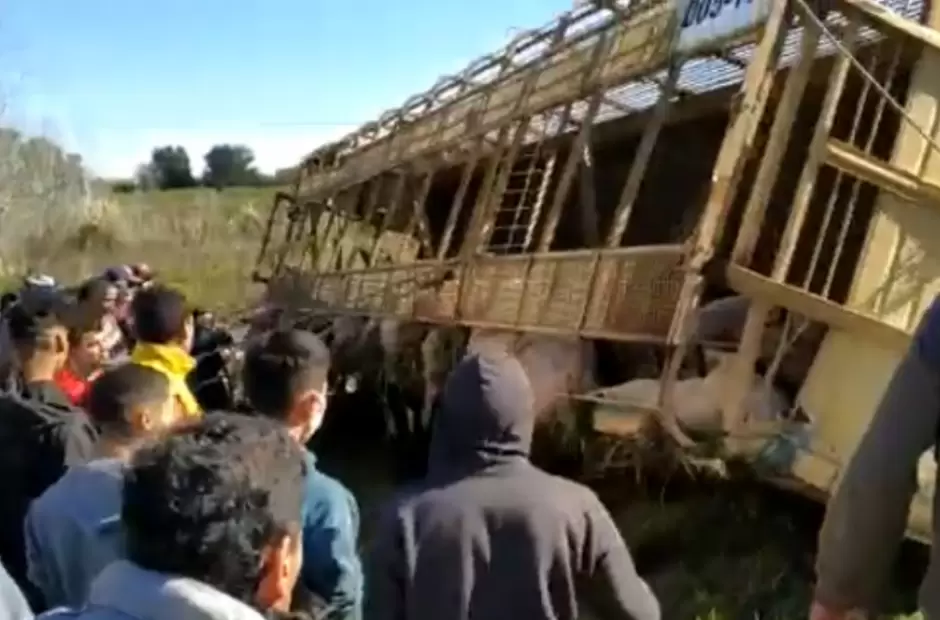 Muchos de los animales quedaron sueltos en la zona de playa de la ex estación de servicios y la policía vial trabajaba para evitar que suban a la ruta. Representantes de las firmas, se llegaron hacia el lugar para ver el estado de situación de los porcinos.